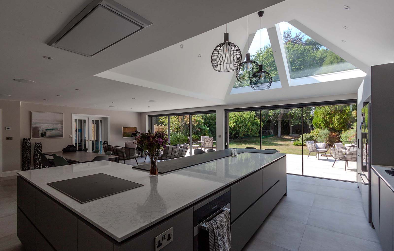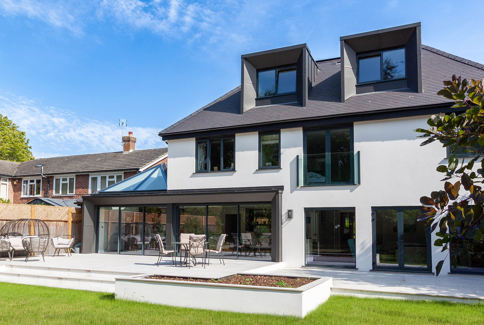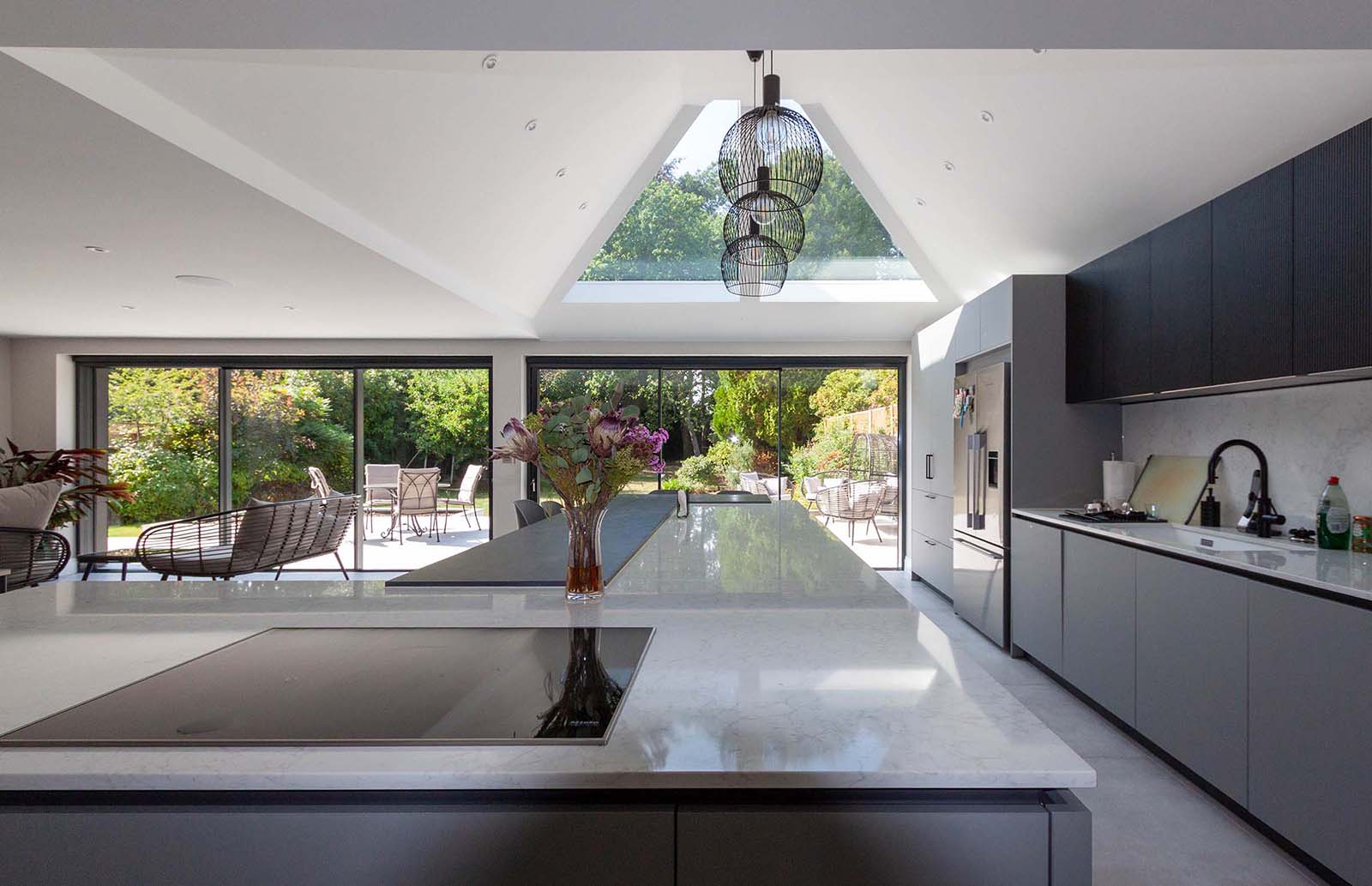 Our clients dreamed of more space, natural light, and a home filled with joy. Thanks to their openness to new ideas, the transformation went smoothly, and the results far surpassed their expectations. We added an extra floor and reconfigured the space to better suit their needs. The rear elevation was completely transformed with a beautiful triangular roof light and sleek twin sliding doors, flooding the lofted open-plan living area with an abundance of daylight. A beautiful reworking of this 1960s structure , into a contemporary, energy-efficient home.